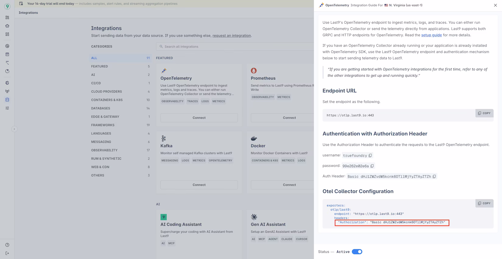 This header will be passed directly from TrueFoundry to Last9 for OTEL authentication.