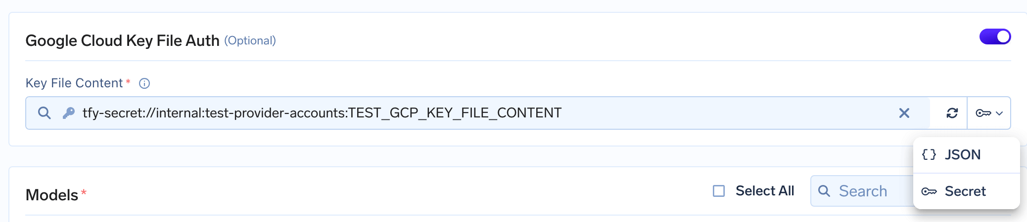 Improved: Google GCP Integrations now support giving Key File Content as TrueFoundry Secret FQN.