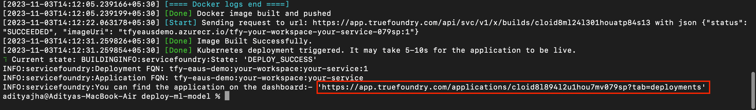 If you are deploying from a Github repository, the docker image is built in Truefoundry control-plane and pushed to your configured container registry.If you are deploying code from your local machine, the Truefoundry SDK first checks is docker is installed on your local environment.