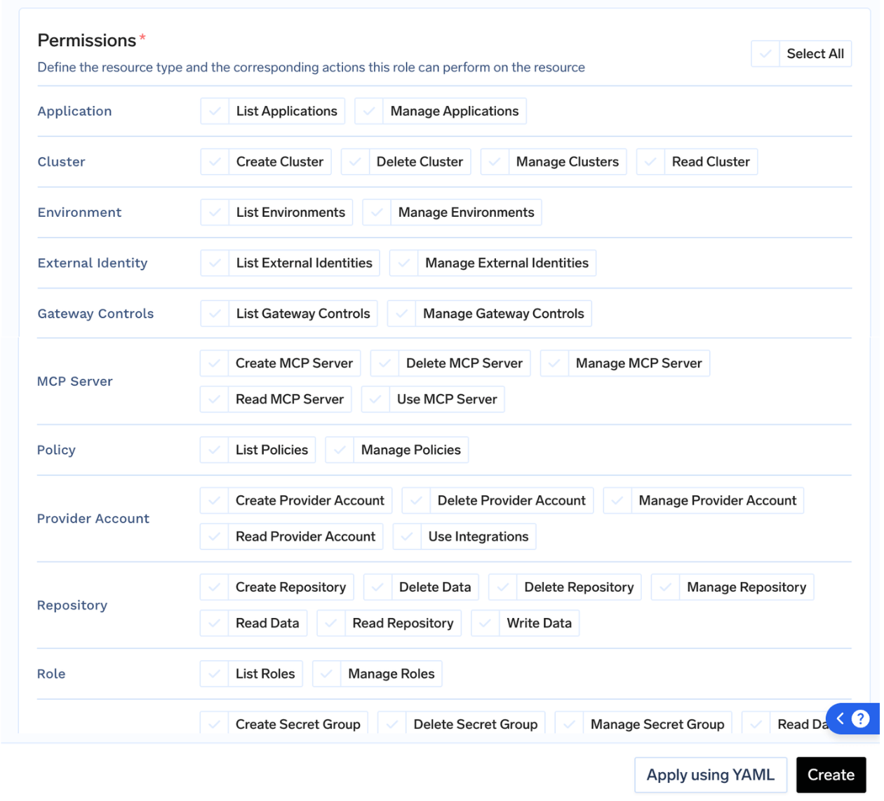 | Provider Account (Models/Guardrails Group) | Create Provider Account | Allows creation of new provider accounts |