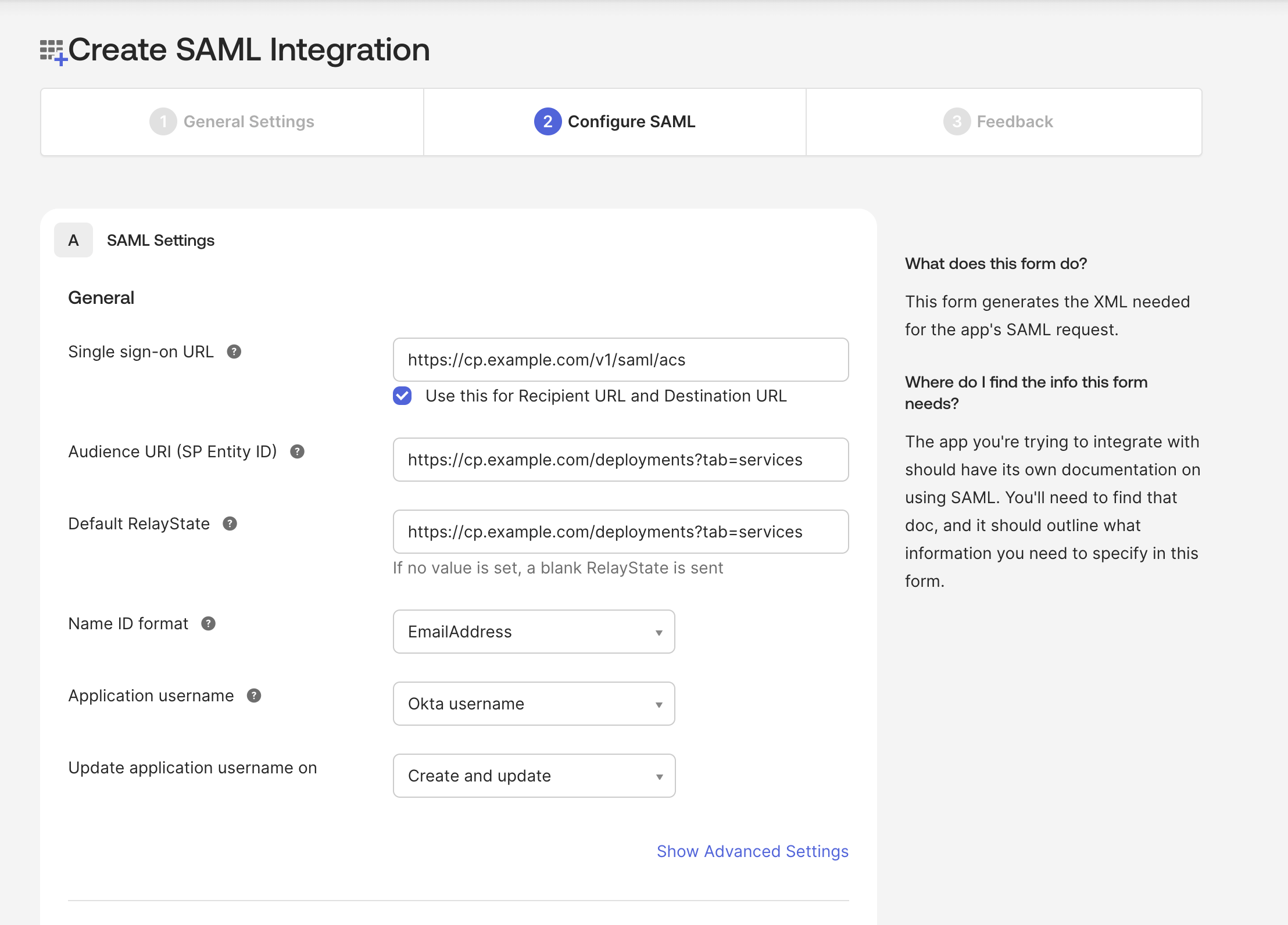 - Default RelayState: This is endpoint where user will be redirected after being authenticated. This is generally control plane URL.