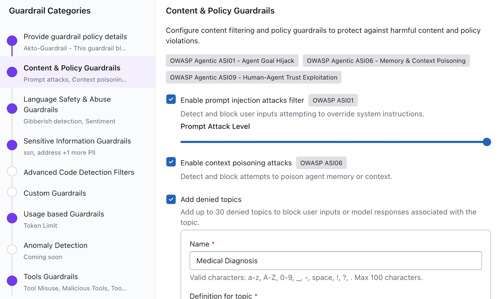 - Akto handles runtime inspection, AI risk assessment, and guardrail policy enforcement
