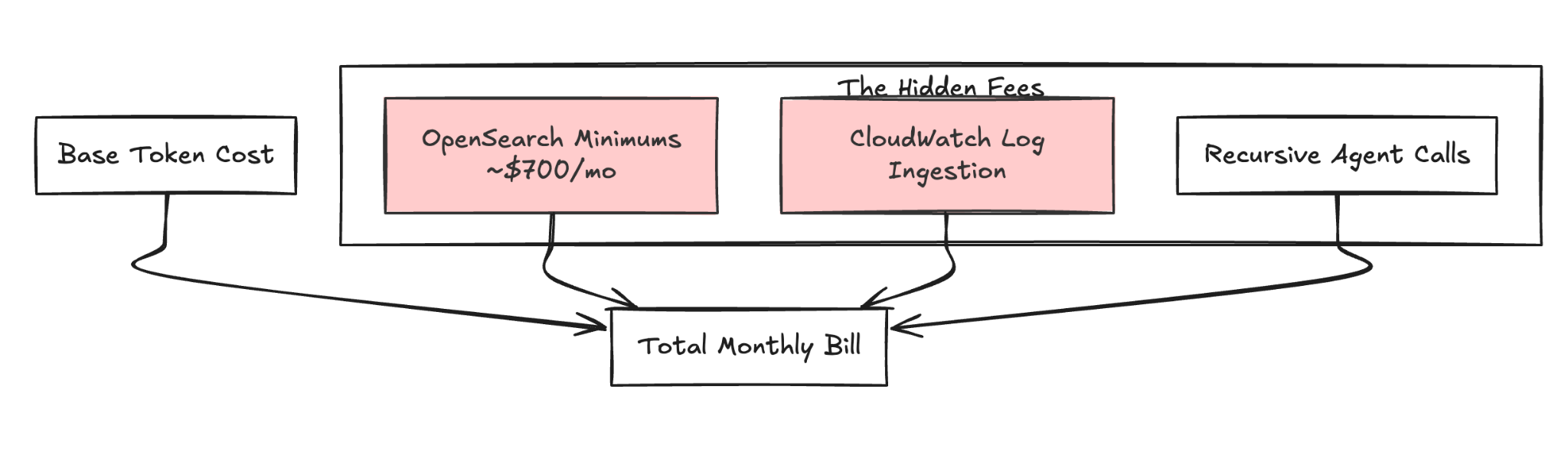 Bedrock Knowledge Bases aren't free magic. Under the hood, they spin up an OpenSearch Serverless vector store. The surprise here is that OpenSearch Serverless has a minimum monthly cost -- often around $700/month for the lowest capacity setting -- even if you have zero traffic. This creates massive "sticker shock" for smaller teams or simple POCs who expected a purely serverless bill.