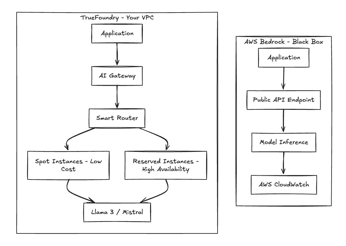 Fig 1. Architecture Comparison: Managed API vs. TrueFoundry Control Plane