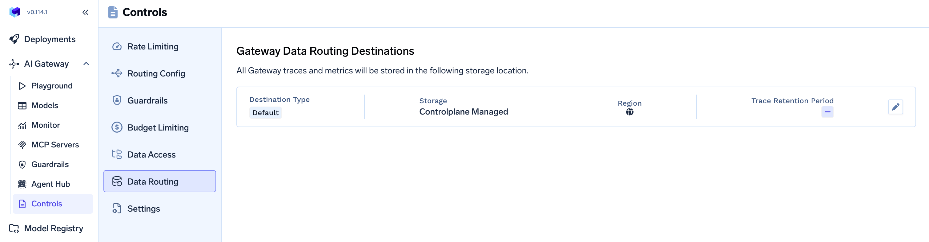 Settings > Default Data Locationsection is moved toAI Gateway > Controls > Data Routingtab.