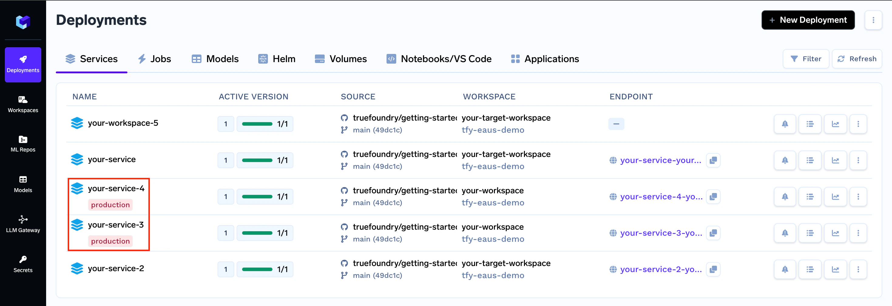 - Environment-based filtering: You can easily filter applications by their assigned environment, focusing on specific sets like production services.