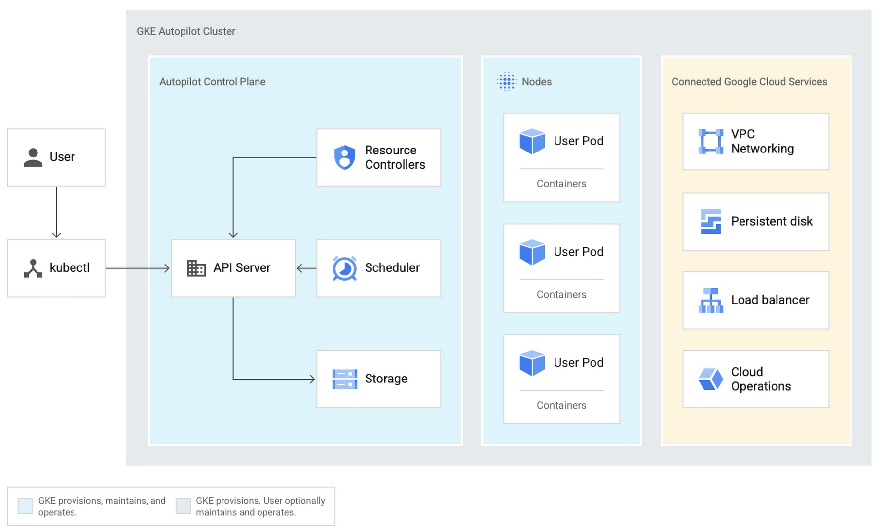 En GCP, confiamos en el piloto automático de GKE, que nos proporciona un clúster administrado que puede ampliarse y reducirse según las solicitudes.