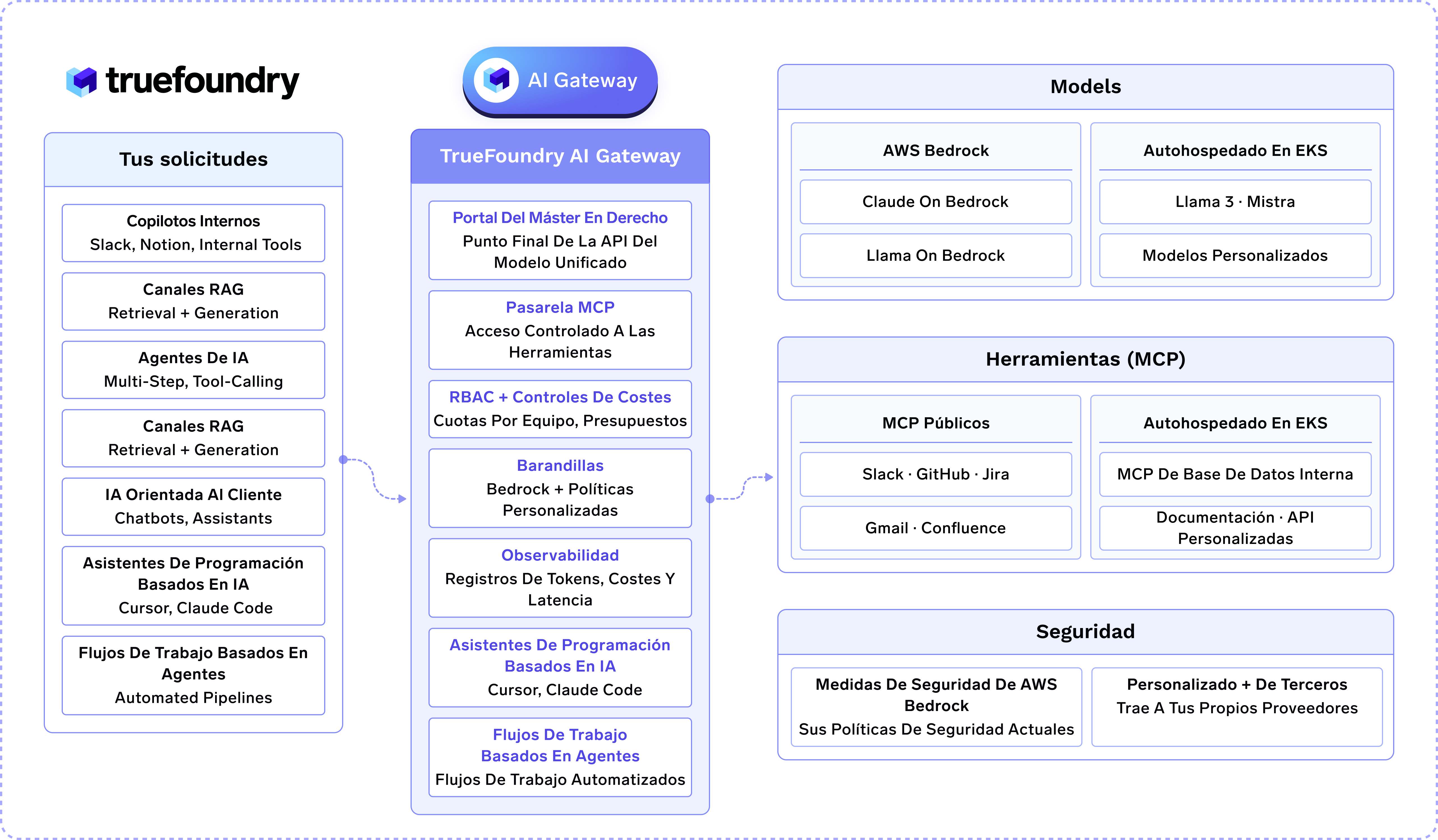 AWS le ofrece una potente infraestructura de IA. TrueFoundry le proporciona una capa de visibilidad adicional, de modo que su equipo de plataforma siempre sabrá cómo se utilizan Bedrock y sus modelos autohospedados, quién los utiliza, a qué costo y cuál es su rendimiento. Juntos, nada corre a ciegas.