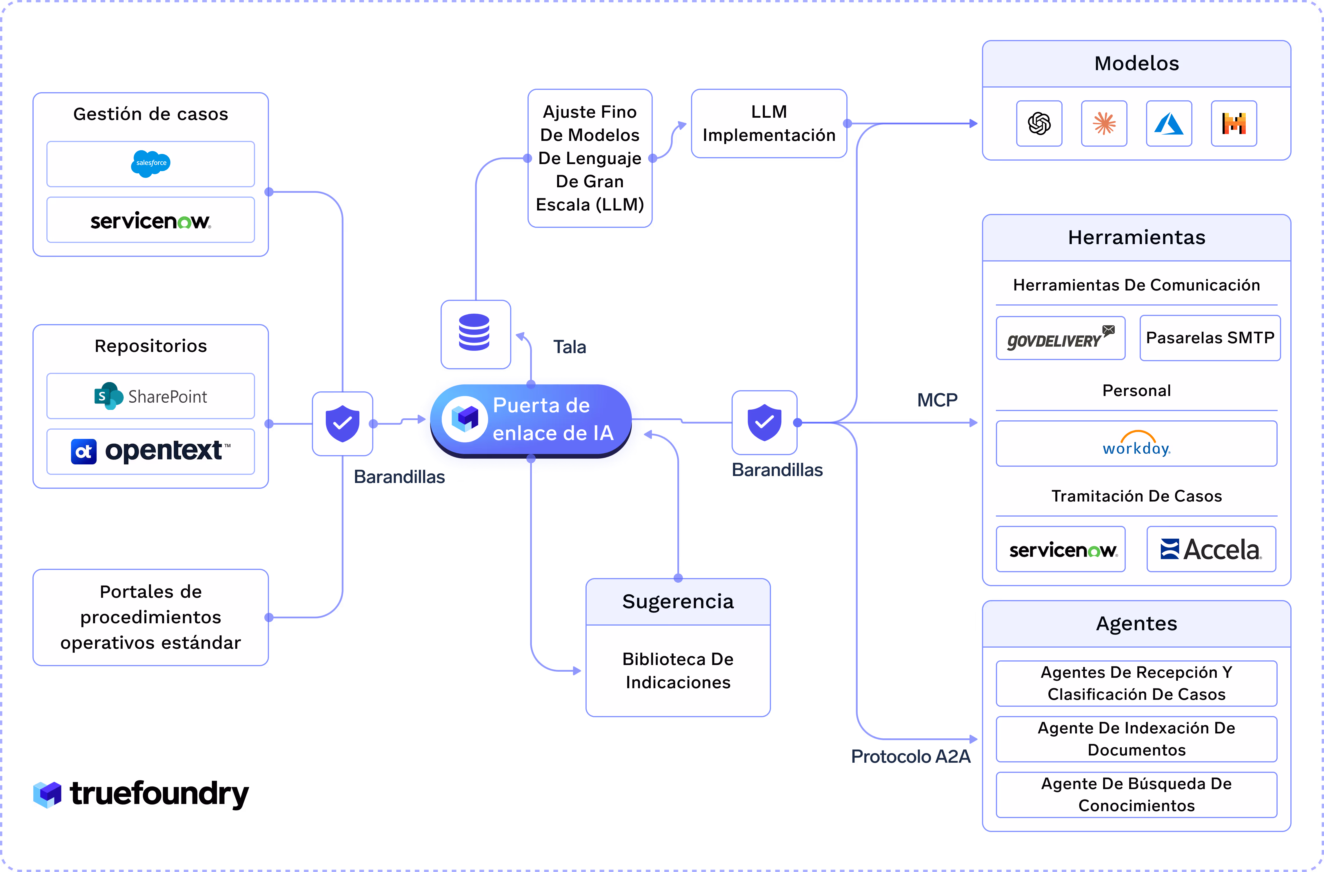 - Conecte a los agentes con sistemas de administración de casos, repositorios de documentos y bases de datos de registros internos sin exponer la PII o los datos controlados, lo que respalda las obligaciones de la Ley de Privacidad