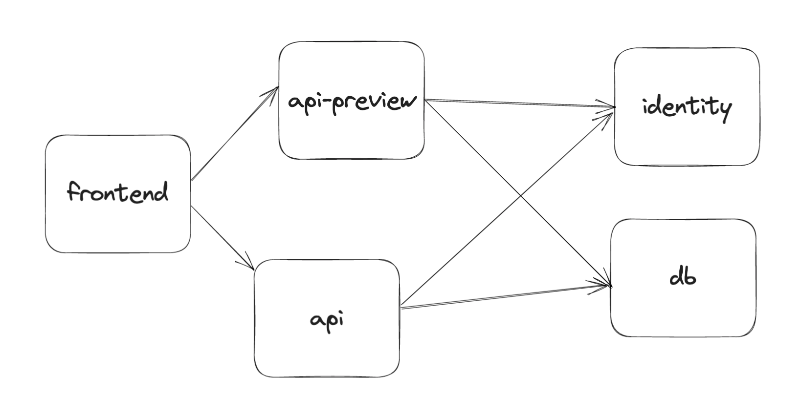 apiservice qui redirige vers une copie d'aperçu en fonction d'un en-tête qui lui est transmis. Cela signifiefrontendpeut continuer à fonctionner avec la même URL simplement en passant un en-tête supplémentaire lors des tests.