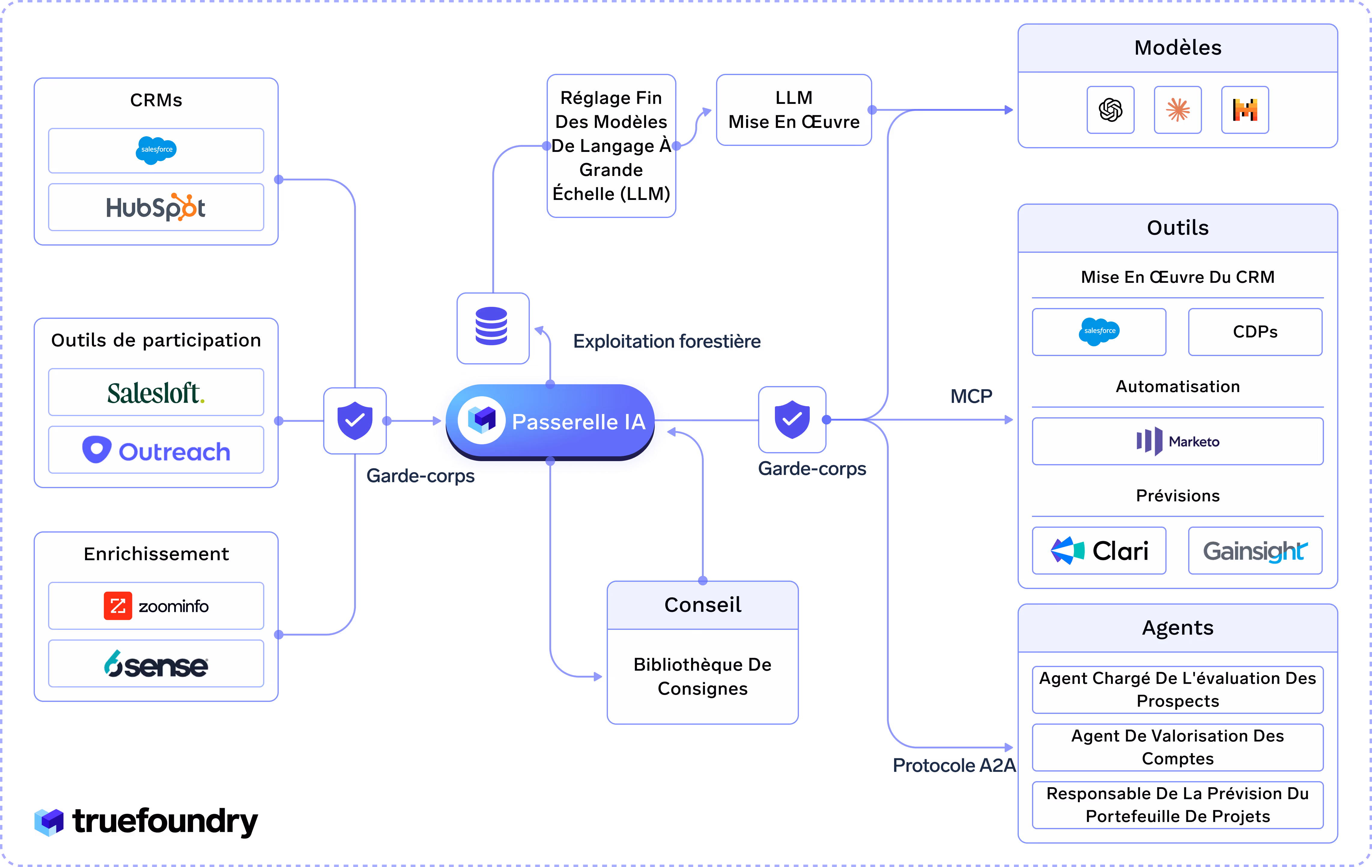 - Délimitez les actions des agents avec MCP Gateway afin que les mises à jour dans Salesforce, HubSpot, Outreach et Marketo restent conformes aux règles d'accès aux données et de territoire en fonction des rôles
