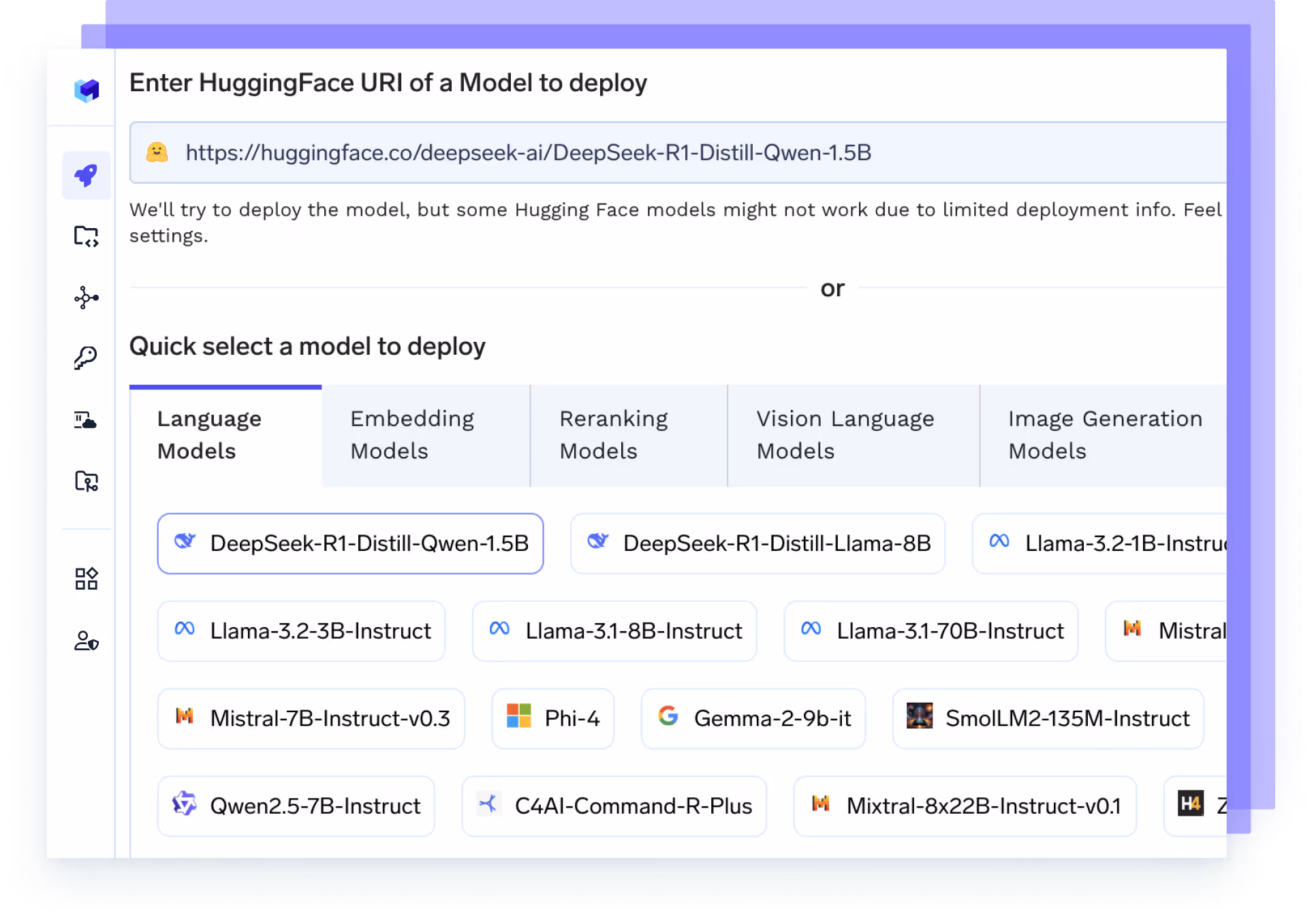 - Launch any open-source LLM via pre-tuned, production-ready pipelines in your on-prem or VPC/hybrid cluster